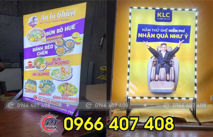 * Hộp đèn bạt hiflex: Giá rẻ, dễ thi công, thích hợp với quảng cáo ngoài trời.