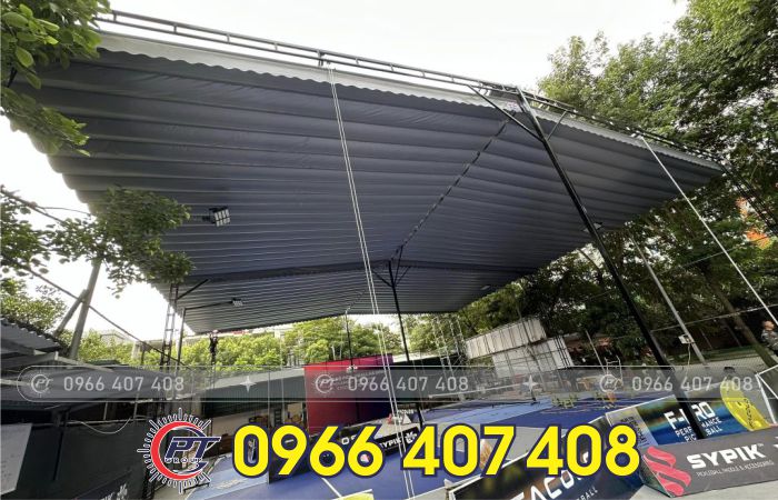 Giá Thi Công Mái Bạt Xếp Bạt Kéo cho Sân picklepall, sân cầu lông giao động : 300.000 – 650.000/m2
