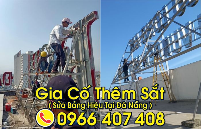 Gia cố thêm sắt khi Sửa Bảng Hiệu Tại Đà Nẵng (rất cần thiết) là một biện pháp hữu hiệu để tăng độ bền và sự ổn định của bảng hiệu, mặt dựng sắt…Đơn vị công ty chúng tôi có thể gia cố khung bảng hiệu khi quý Anh/Chị cần, đảm bảo dàn kết cấu luôn hoạt động tốt và bền bỉ dưới mọi điều kiện thời tiết.